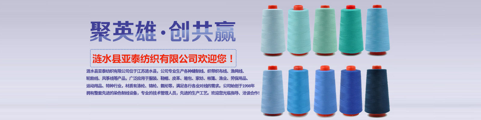 漣水縣亞泰紡織有限公司位于江蘇漣水縣,公司專業(yè)生產(chǎn)各種縫制線、織帶織布線、漁網(wǎng)線、輪胎線、風(fēng)箏線等產(chǎn)品,廣泛應(yīng)用于服裝、鞋帽、皮革、箱包、家紡、帳篷、漁業(yè)、勞保用品、運(yùn)動用品、特種行業(yè),材質(zhì)有滌綸、錦綸、氨綸等,滿足各行各業(yè)對線的需求。公司始創(chuàng)于1998年,擁有整套先進(jìn)的染色制線設(shè)備,專業(yè)的技術(shù)管理人員,先進(jìn)的生產(chǎn)工藝。歡迎您光臨指導(dǎo)、洽談合作!